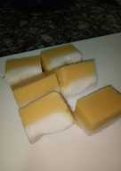Keluarkan potong-potong sajikan dingin. 100 gram kelapa diparut panjang. 100 gram gula merah diserut halus.